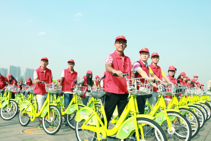 本次志愿者服务队由90名章丘市政府机关青年攻坚突击队队员和30名haobo.com大学生组成,这120名青年志愿者统一着红色志愿者服装,带红色志愿者帽子,主要为市民讲解公共自行车系统意义,宣传绿色低碳出行理念,发放公共自行车使用手册,为市民讲解公共自行车的使用方法及相关站点设置情况等。